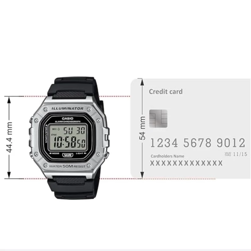 مشخصات : اندازه 44.4 × 43.2 × 10.8 میلی متر وزن 37 گرم جنس قاب رزین جنس بند رزین چراغ LED نور پس زمینه LED پس درخشش تقریبا عمر باتری تقریبا 7 سال مقاومت در برابر آب 50 متر جنس شیشه رزین کرنومتر 1/100 ثانیه ای ظرفیت اندازه گیری: 23:59’59.99” حالت های اندازه گیری: زمان سپری شده، زمان تقسیم، زمان های رتبه اول تا دوم تقویم خودکار کامل (تا سال 2099) زنگ هشدار 5 آلارم روزانه یا یک بار آلارم دقت ± 30 ثانیه در ماه زمان سنجی منظم دیجیتال: ساعت، دقیقه، ثانیه، بعد از ظهر، ماه، تاریخ، روز