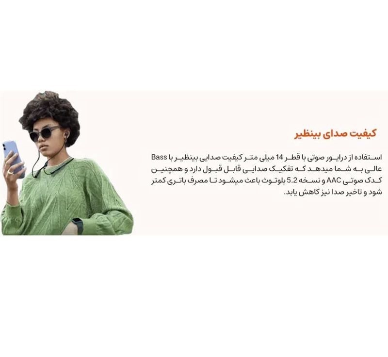 ویژگیهای جانبی: مجهز به چراغ LED برای نمایش وضعیت باتری و اتصال، پشتیبانی از کنترل موسیقی و تماسها