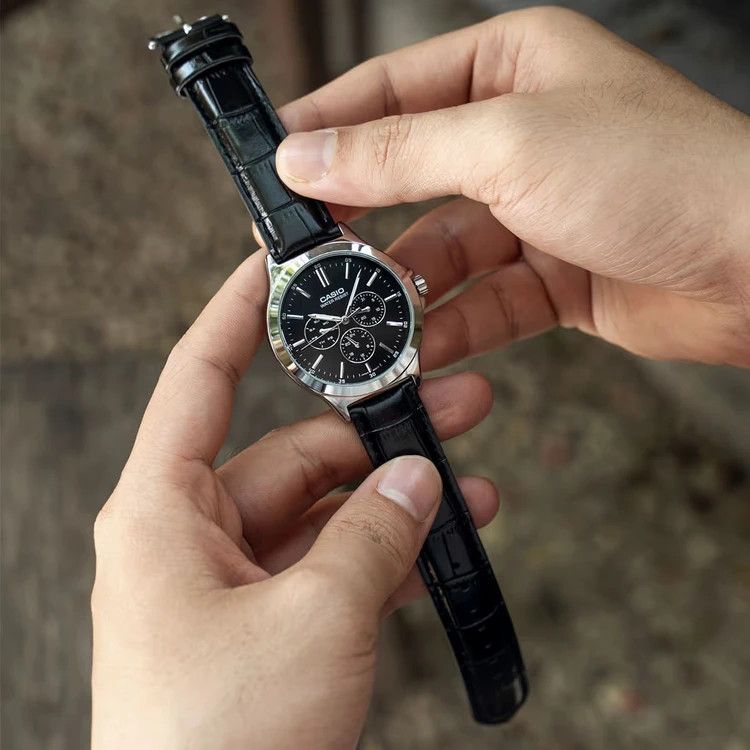ساعت مچی مردانه Casio مدل MTP-V300L-7A ترکیبی زیبا از طراحی کلاسیک و ظرافت مدرن است. این مدل با بند چرمی قهوهای و صفحه سفید ساده، جلوهای مینیمال و در عین حال شیک دارد که بهخوبی با استایل رسمی یا روزمره هماهنگ میشود. ظاهر تمیز و متعادل ساعت باعث میشود در هر موقعیتی – از جلسات کاری تا قرارهای روزانه – ظاهری آراسته و حرفهای داشته باشید.صفحه سفید با سه زیرصفحه ظریف طراحی شده که حس عملکرد و دقت را به ساعت میدهد، در حالی که رنگ گرم بند چرمی قهوهای حس کلاسیک و اصالت را تقویت میکند. این ترکیب رنگ، ظاهری لوکس اما صمیمی ایجاد کرده که برای آقایان خوشپوش انتخابی ایدهآل است.کاسیو در مدل MTP-V300L-7A نشان داده که چطور میتوان بین سادگی و کاربرد تعادل برقرار کرد. بدنه باریک، طراحی خوشدست و جزئیات دقیق ساخت، همگی نشان از کیفیت اصیل برند کاسیو دارند. اگر به دنبال ساعتی هستید که در عین سادگی، جلوهای خاص و حرفهای به استایل شما ببخشد، این مدل یکی از بهترین گزینهها برایتان خواهد بود.