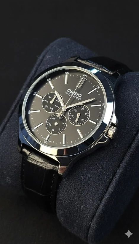 ساعت مچی مردانه Casio مدل MTP-V300L-7A ترکیبی زیبا از طراحی کلاسیک و ظرافت مدرن است. این مدل با بند چرمی قهوهای و صفحه سفید ساده، جلوهای مینیمال و در عین حال شیک دارد که بهخوبی با استایل رسمی یا روزمره هماهنگ میشود. ظاهر تمیز و متعادل ساعت باعث میشود در هر موقعیتی – از جلسات کاری تا قرارهای روزانه – ظاهری آراسته و حرفهای داشته باشید.صفحه سفید با سه زیرصفحه ظریف طراحی شده که حس عملکرد و دقت را به ساعت میدهد، در حالی که رنگ گرم بند چرمی قهوهای حس کلاسیک و اصالت را تقویت میکند. این ترکیب رنگ، ظاهری لوکس اما صمیمی ایجاد کرده که برای آقایان خوشپوش انتخابی ایدهآل است.کاسیو در مدل MTP-V300L-7A نشان داده که چطور میتوان بین سادگی و کاربرد تعادل برقرار کرد. بدنه باریک، طراحی خوشدست و جزئیات دقیق ساخت، همگی نشان از کیفیت اصیل برند کاسیو دارند. اگر به دنبال ساعتی هستید که در عین سادگی، جلوهای خاص و حرفهای به استایل شما ببخشد، این مدل یکی از بهترین گزینهها برایتان خواهد بود.