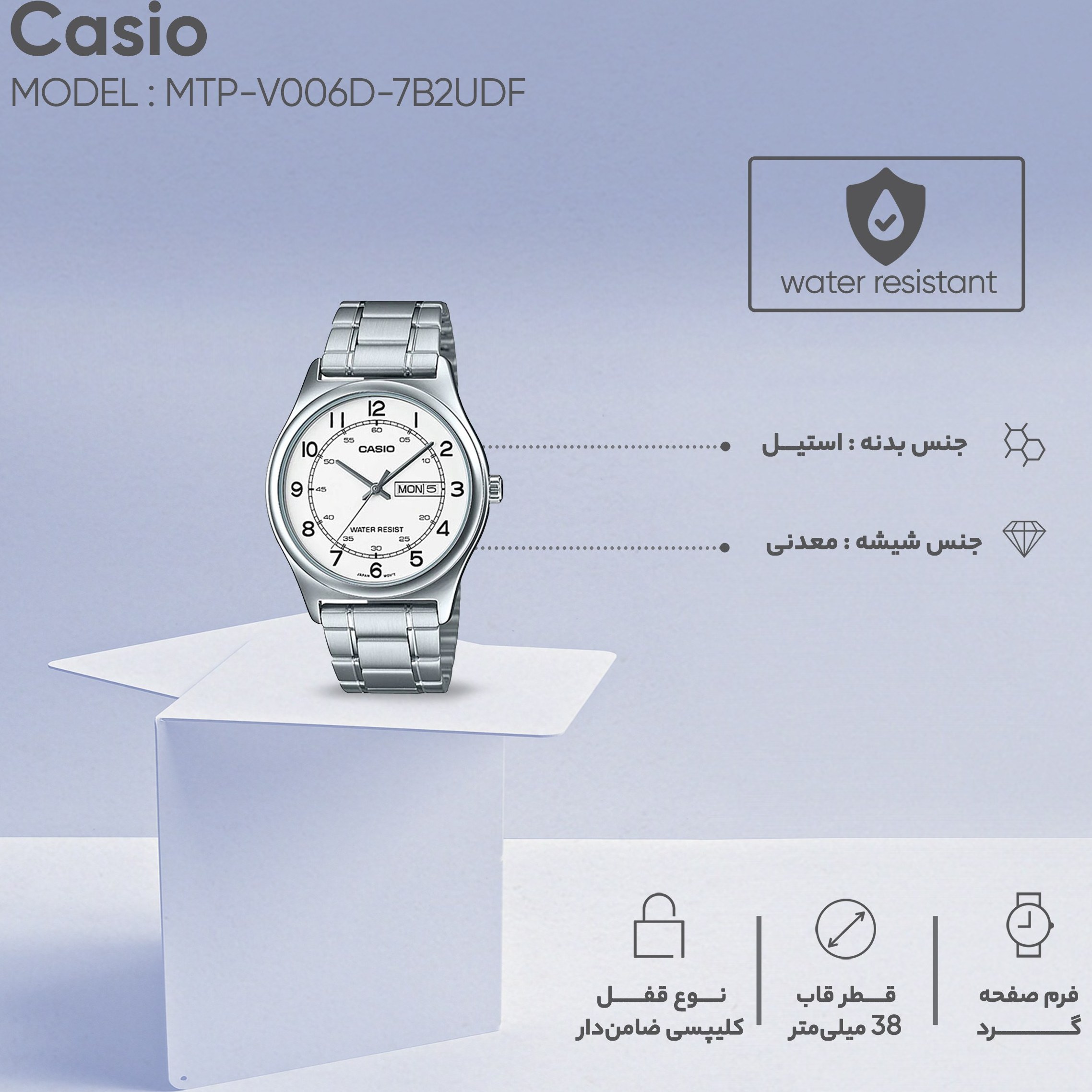 ساعت مچی مردانه کاسیو مدل MTP-V006D-7B2UDF با بند استیل