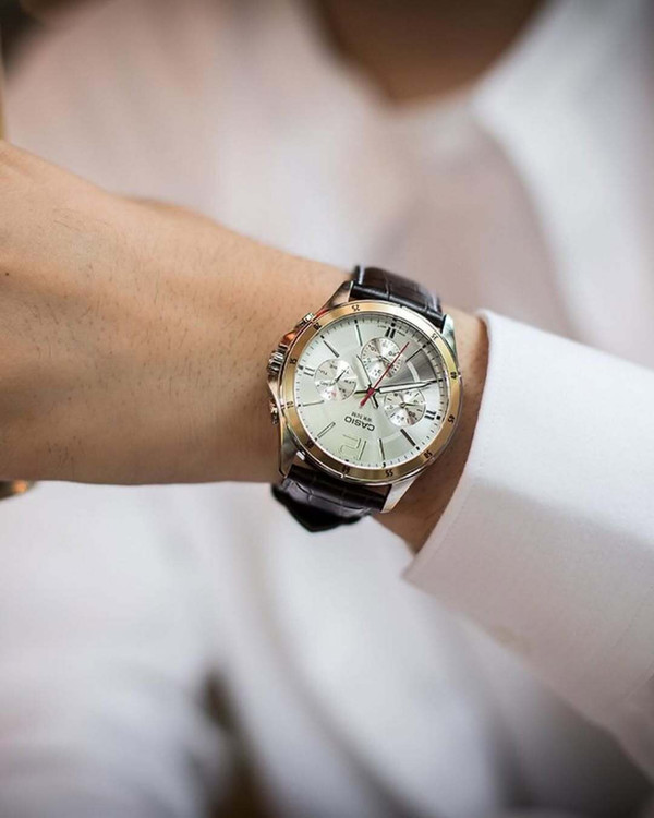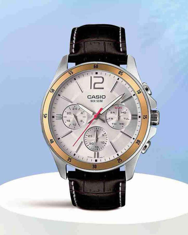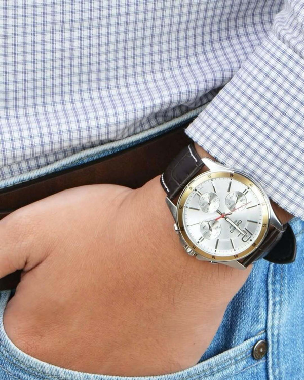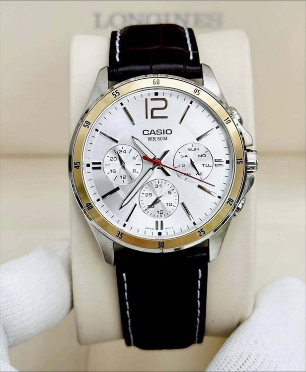 زمانسنجی منظم آنالوگ: 3 عقربه (ساعت، دقیقه و ثانیه), 3 نمایشگر (24 ساعته، نمایش تاریخ و روزهای هفته)