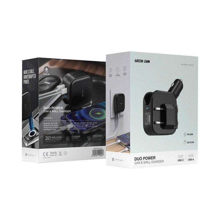 شارژر دوگانه ماشین و دیواری گرین لاین -شماره مدل: GL-CC06 -ماده: پیسی و مس -PD 20W -پلاگین اتحادیه اروپا -ورودی AC: 100-240 ولت، 50-60 هرتز -ورودی DC: 12-24 ولت -خروجی USB-A: 5V/3A، 9V/2A، 12V/1.5A 18W -خروجی USB-C: 5V/3A، 9V/2.22A، 12V/1.67A 20W شارژر دوگانه ماشین و دیواری گرین لاین برای کسانی طراحی شده که نیاز دارند گوشی خود را هم در خانه و هم در ماشین شارژ کنند. این شارژر دارای سوکت EU و فناوری شارژ سریع PD با توان 20 وات است که اطمینان میدهد دستگاههای شما همیشه به سرعت شارژ میشوند. طراحی جمعوجور آن همچنین حمل آسان آن را در کیف یا جیب شما ممکن میسازد. شارژر دوگانه گرین لاین به عنوان یک شارژر خودرو و شارژر دیواری عمل میکند که برای هر کسی مناسب است.