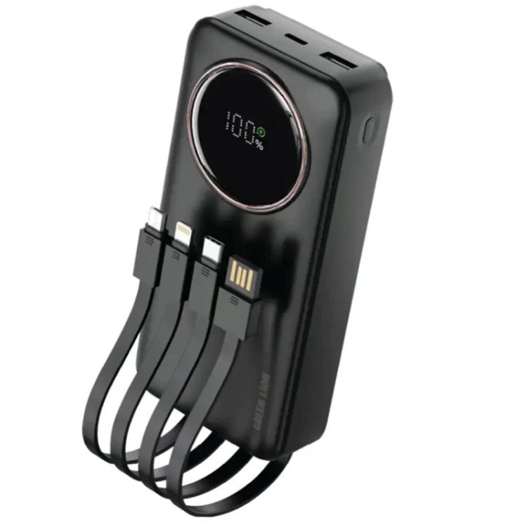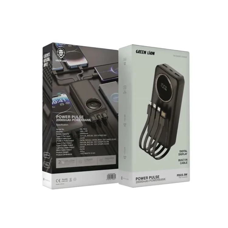 با پاوربانک 20000 میلی آمپر ساعتی Green Lion Power Pulse، یک راه حل شارژ همه کاره و با کارایی بالا، در حال حرکت احساس قدرت کنید. این پاوربانک که از مواد بادوام ABS + PC ساخته شده است، قابلیت اطمینان را با سبک ترکیب می کند. با ظرفیت باتری 20000 میلی آمپر ساعتی، قدرت بی پایانی را به دستگاه های شما ارائه می دهد. چندین گزینه ورودی دارد: یک پورت Type-C با پشتیبانی از 22.5 وات و شارژ مجدد از طریق کابل USB-A برای شارژ سریع و آسان. علاوه بر ارائه خروجی، دارای 2 پورت USB-A، یک درگاه Type-C و کابل های لایتنینگ، USB-Micro و Type-C یکپارچه است. تا 22.5 وات شارژ سریع را برای طیف گسترده ای از دستگاه ها تامین می کند. صفحه نمایش دیجیتال وضعیت باتری را نشان می دهد، در حالی که کابل های داخلی آن را قابل حمل تر می کنند، با توجه به اینکه لوازم جانبی اضافی کمتر مورد نیاز است. تلفن هوشمند، تبلت یا هر ابزار دیگری، پاوربانک Green Lion Power Pulse کارایی و شارژ سریع بسیار خوبی را ارائه می دهد، از این رو در استفاده روزانه و حتی در طول سفر بسیار ضروری است