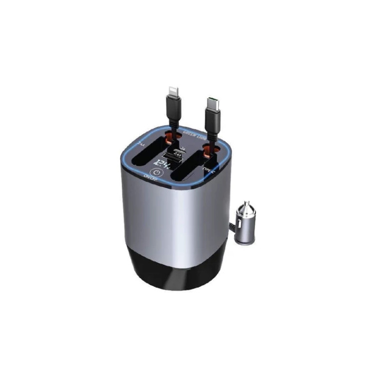 شارژر فندکی گرین لاین مدل Multifunctional 38W شارژر فندکی گرین لاین مدل Multifunctional 38W دستگاهی قدرتمند که با مجموع چهار خروجی، تجربه شارژ در خودرو شما را افزایش می دهد. این شارژر با چراغ های چند رنگ LED جذاب خود فضای داخل خودروی شما را زنده می کند. شارژ دستگاه را با دو کابل داخلی – لایتنینگ و نوع C – هر دو با طول 80 سانتی متر تضمین می کند. نه تنها این، بلکه دو خروجی دیگر نیز دارد (یک پورت USB-A و یک درگاه Type-C)، بنابراین می توانید چندین دستگاه را به طور همزمان شارژ کنید. علاوه بر این، این شارژر دارای قابلیت شارژ سریع QC 38 واتی است و همچنین به عنوان خوشبو کننده هوا برای خودروها عمل می کند، که آن را به یک لوازم جانبی ضروری سفر برای هرکسی که به کارایی، راحتی و کمی ذوق در رانندگی نیاز دارد تبدیل میکند